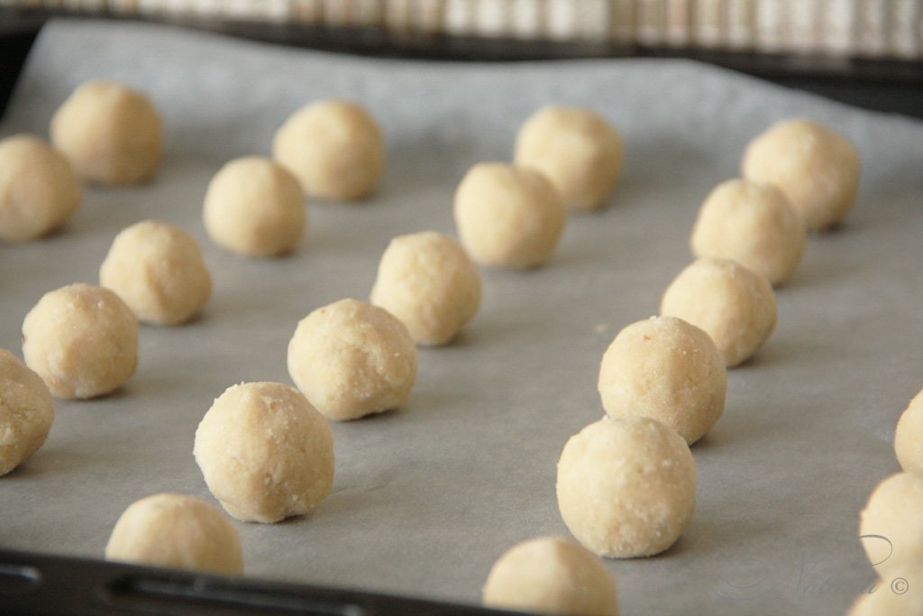 если бы знала, что шарики так тяжело будут лепиться, то наверно бы не взялась за них :) хотя к середине уже приноровилась и достаточно быстро выходили… я сделала с фундуком вместо миндаля :) чтобы уже совсем по-пьемонтски…