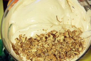 | Вмешиваем орехи. Стараемся уложиться в минимальное количество движений. | |