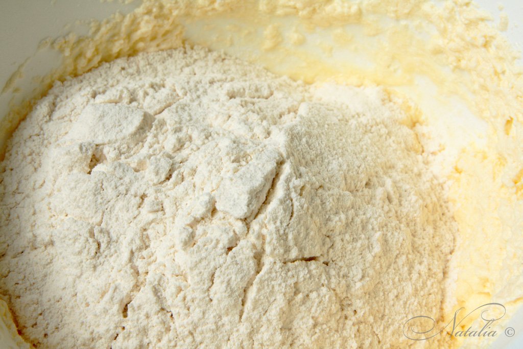 | Теперь нужна мука. Нужно ее всыпать частями и мешать. | |
