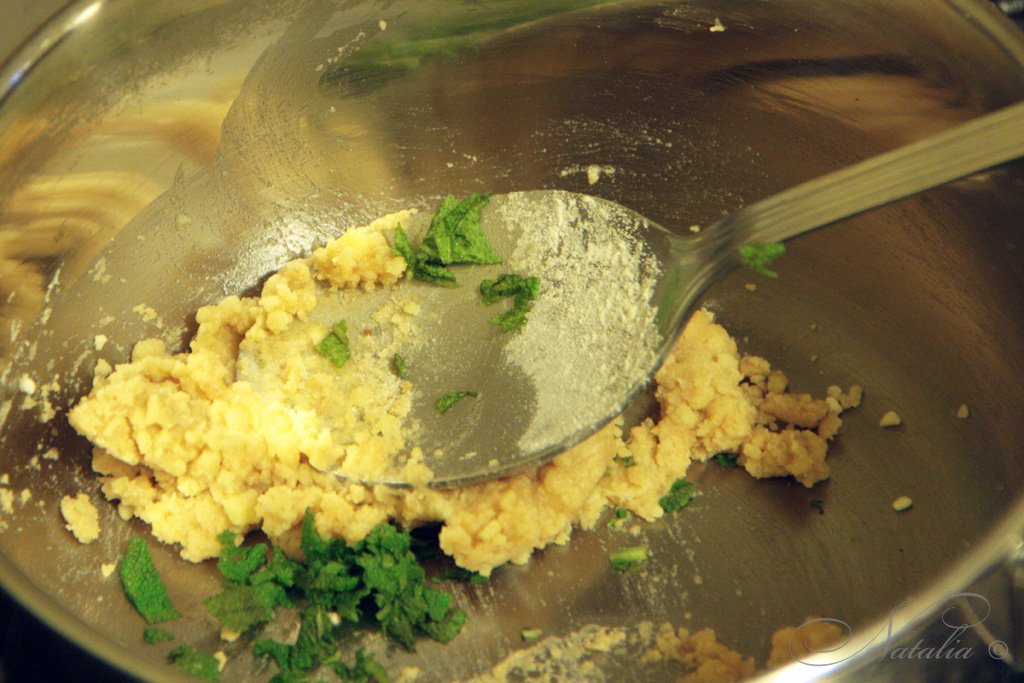 | Заранее нарежьте свежие листья шалфея и кусочек масла. Как мука поджарится кладем к ней масло и мешаем. Потом добавляем шалфей и мешаем минутки 2. Огонь лучше уменьшить. | |
