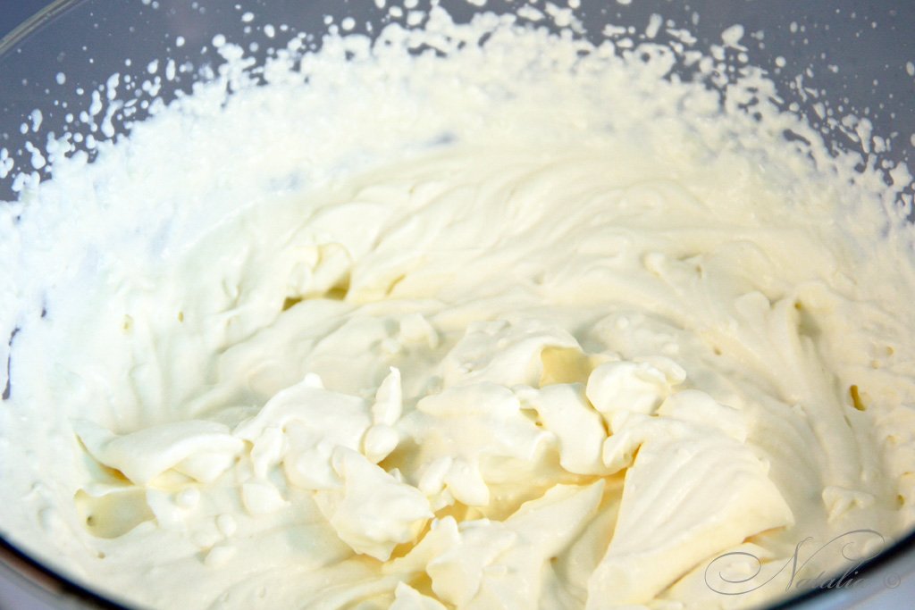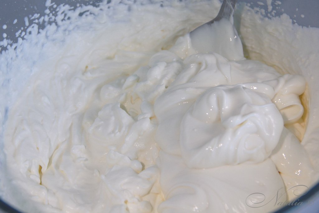 | Готовим крем. Взбиваем сливки с закрепителем минут 7-10 наверно. У меня долго не хотели взбиваться. Взбиваем до пиков! Это значит если перевернуть венчик вверх крем не опадет. | |