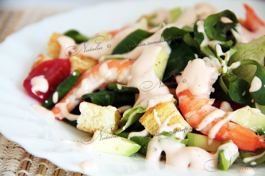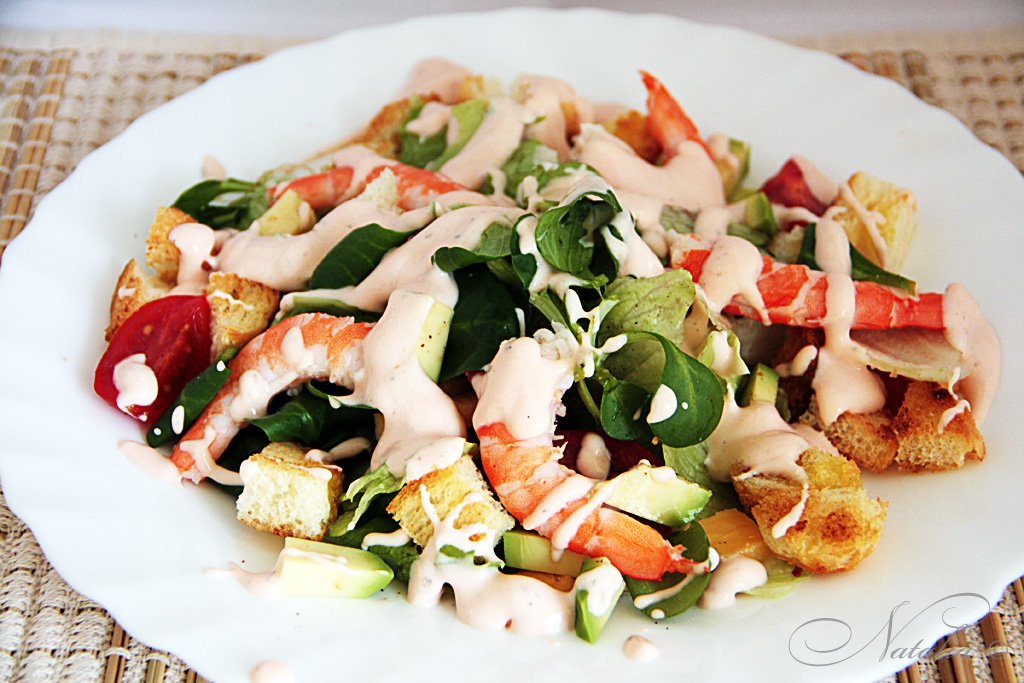 | Все смешиваем и поливаем розовым соусом. Приятного аппетита! |