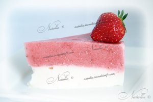Это восхитительный десерт. Сама нежность на вашем столе! Прекрасная основа для торта, но и без бисквитного коржа он потрясающе вкусный!!! Я думаю многие в клубничный сезон перетирают ее со сметаной или молоком. Так вот этот десерт из себя представляет нежнейший мусс из клубники, а снизу творожное суфле. Классическое сочетание продуктов в общем. Вы еще не соблазнились? Тогда еще один секрет, этот десерт не испортит фигуру :)