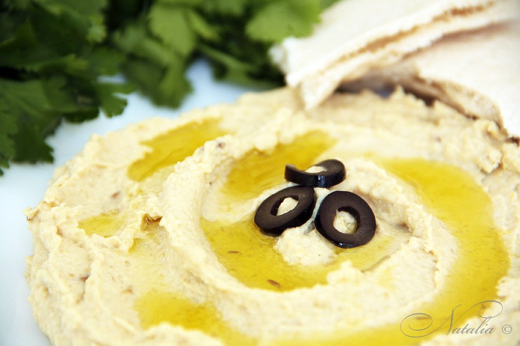 Хуммус (хумус) — этот соус пришел к нам с Ближнего Востока. Основа соуса (паштета?) горох Нут, его еще называют турецкий горох, и паста тахини (тхина). Подают этот соус как закуску с лепешками, питой, чипсами и хлебом. Этот блюдо также популярно у вегетарианцев, так как хуммус содержит растительный белок, клетчатку и ненасыщенные жиры. Так же хуммус снижает уровень сахара в крови, холестерин и благотворно влияет на пищеварительную систему и обмен веществ. По этому рецепту хуммус не горчит! Попробуйте обязательно.