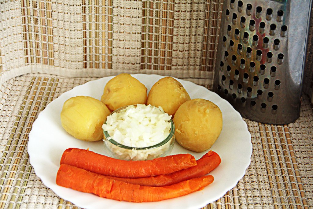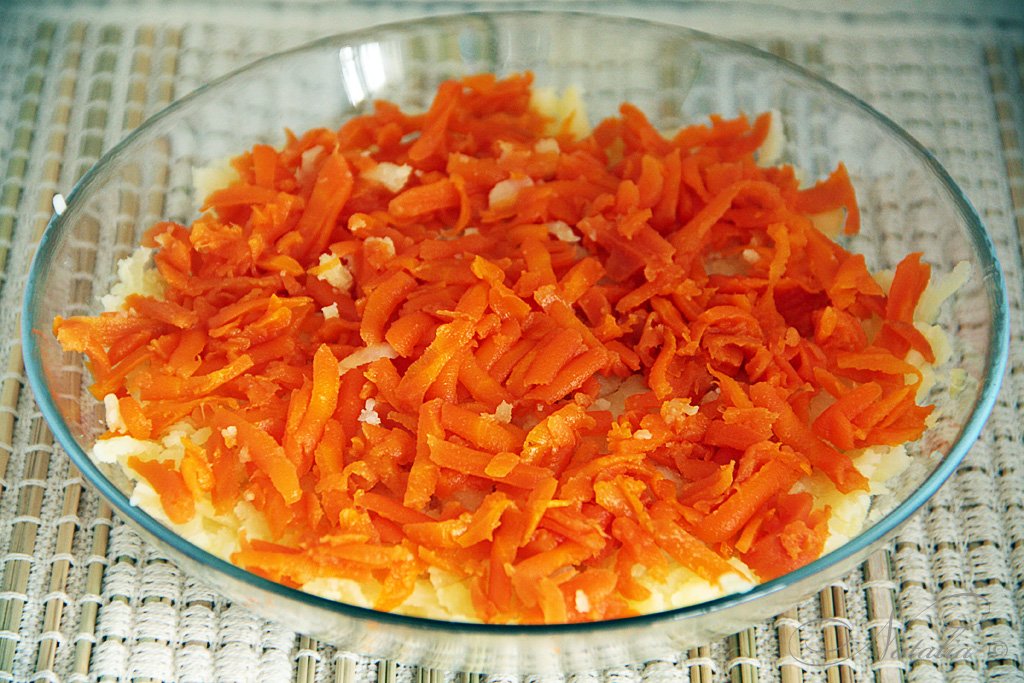 | Поверх натираем 1,5 картофелины и 2 моркови. | |