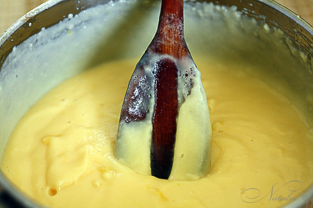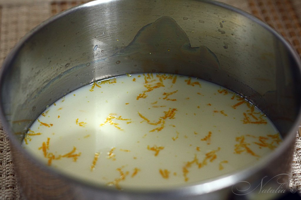 | Готовим крем. В ковшик наливаем молоко и натираем цедру с лимона. Доводим до кипения и выключаем. | |