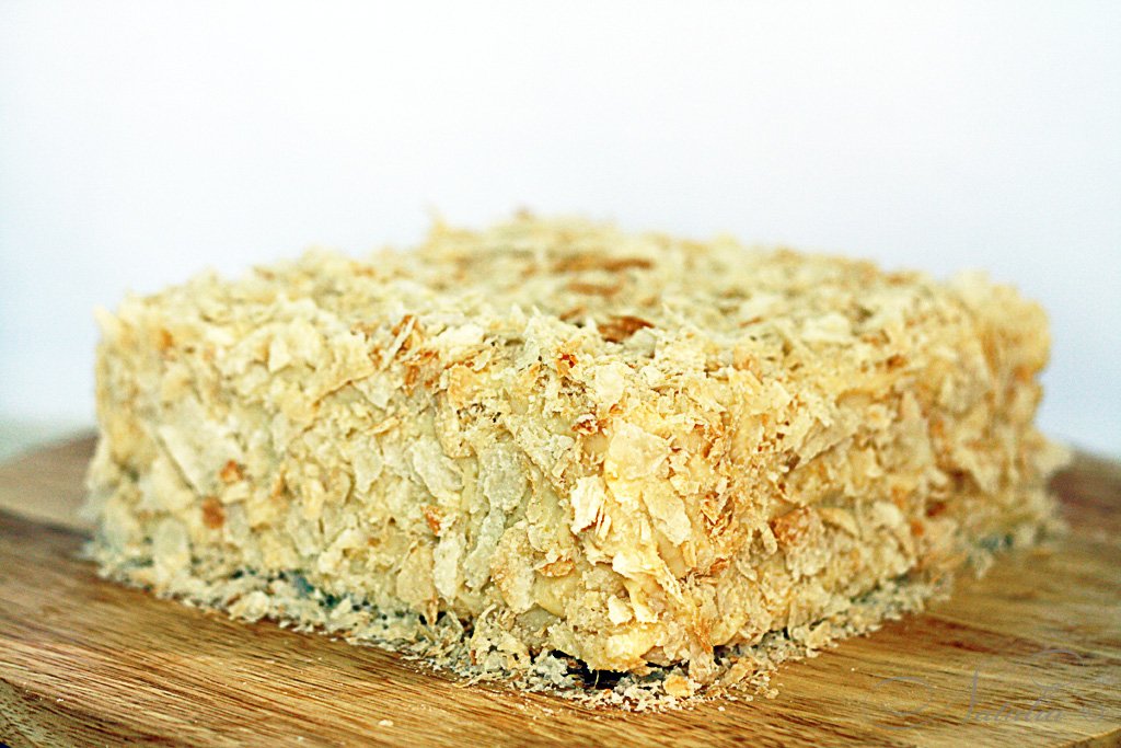 | Коржи намазываем кремом и собираем торт. Бока и верх смазываем кремом и присыпаем крошками из обрезков. | |