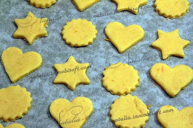 | Раскатываем в пласт толщиной 1/2 см и вырезаем формочками (стаканом). Перекладываем на застеленный противень. | |