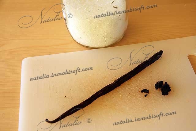 | Если используете стручок ванили, то разрезаем его вдоль и ножом вычищаем семена. Стручок кладем в банку с сахаром (так получите ванильный сахар). Семена пойдут в выпечку. | |