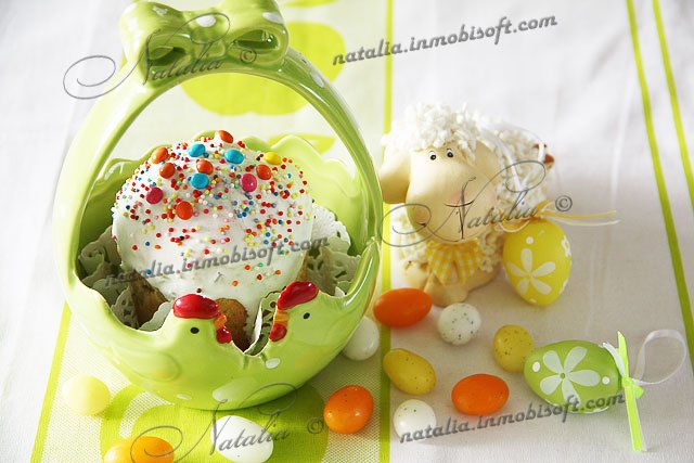 | Выпекаем при 180 градусах 35-40 минут для средних и 30-35 минут для небольших. Готовность проверяем лучинкой, она должна быть сухой. Вынимаем и кладем на бок. Поворачивая каждые 3-4 минуты остужаем куличи. Для глазури смешиваем 1 белок со 100-150 граммами сахарной пудры и 1/2 ч.л. лимонного сока. Украшаем и ждем светлого дня Пасхи! | |