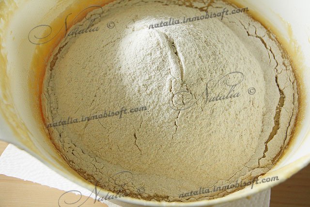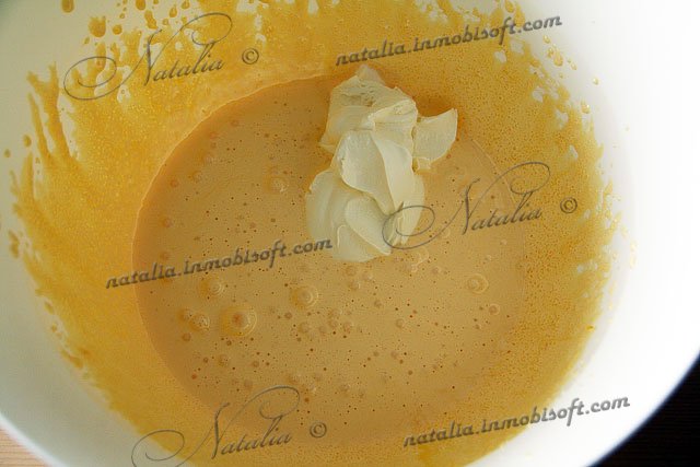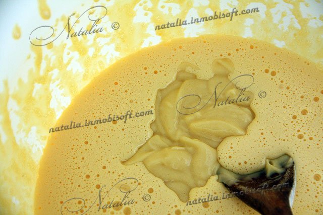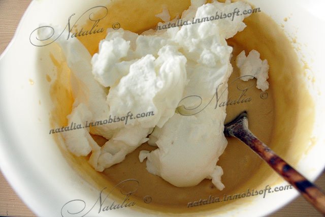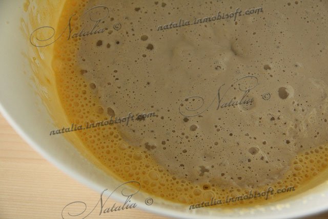 | Затем к желткам добавляем опару и перемешиваем. Добавляем примерно 1/2 ст. муки чтоб тесто получилось как жидкая сметана. | |