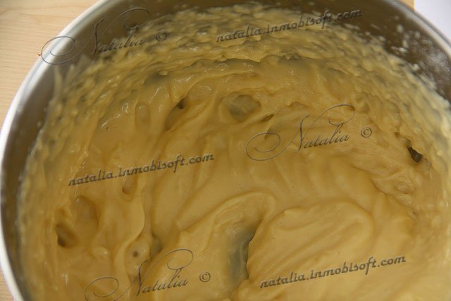 | Масло добавляем к заварному тесту и взбиваем до гладкости. | |