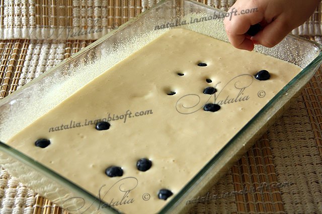 | Форму для запекания смазываем маслом и обсыпаем манкой. Выливаем творожную массу и посыпаем ягодами. | |