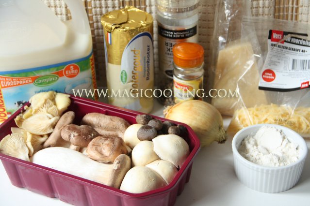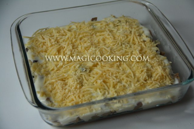 Вкусное осеннее блюдо. Рецепт классический с соусом бешамель. Грибы какие-то необыкновенно красивые, что жаль было резать. Но если взять обычные шампиньоны, то получится не менее вкусно.