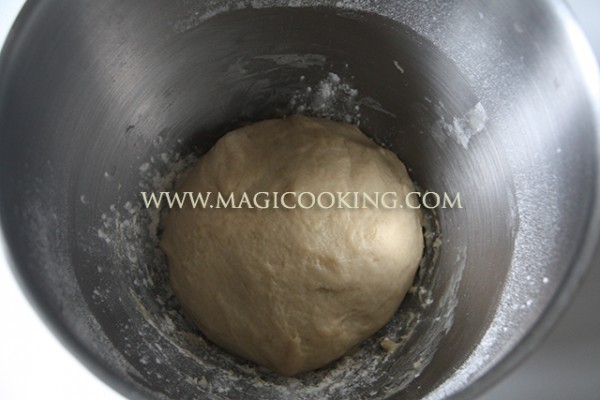 Замешиваем тесто. Должен получится эластичный колобок. Мука у всех разная и может потребоваться на пару ложек больше. Оставляем тесто на 1 час. Тесто увеличится вдвое.
